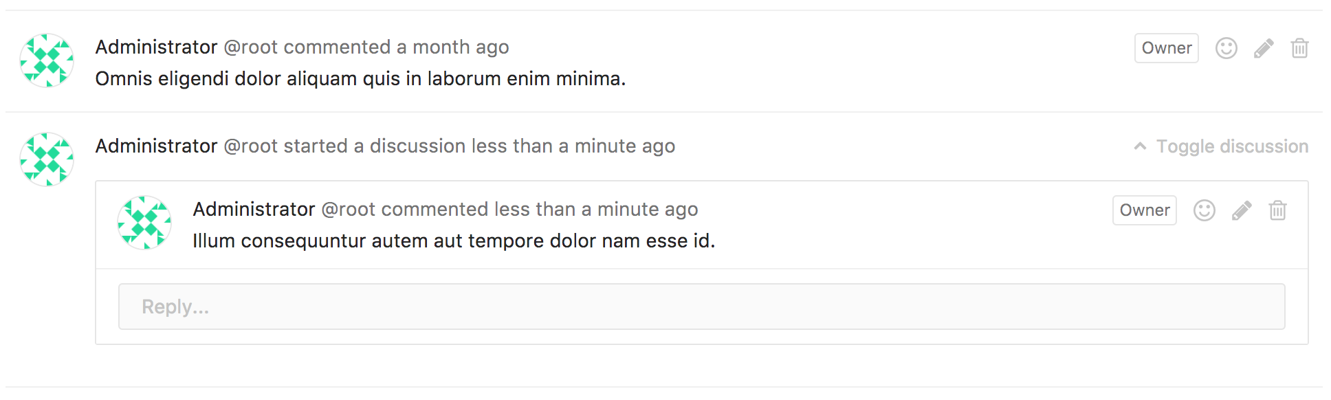 While resolvable discussions are only available to merge request diffs, discussions can also be added without a diff. You can start a specific discussion which will look like a thread, on issues, commits, snippets, and merge requests.