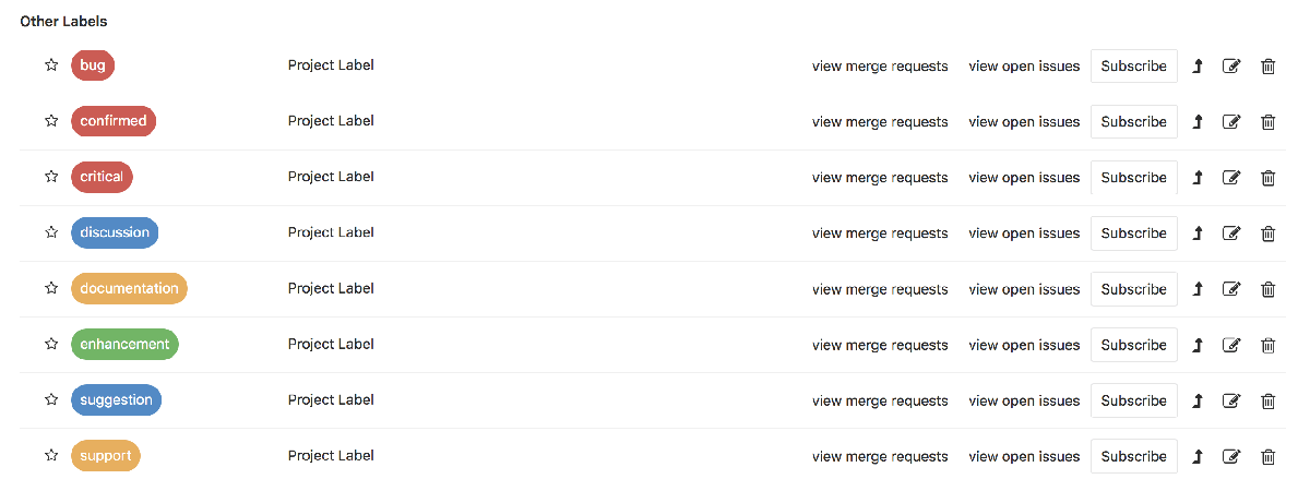 GitLab will add the following default labels to the project: